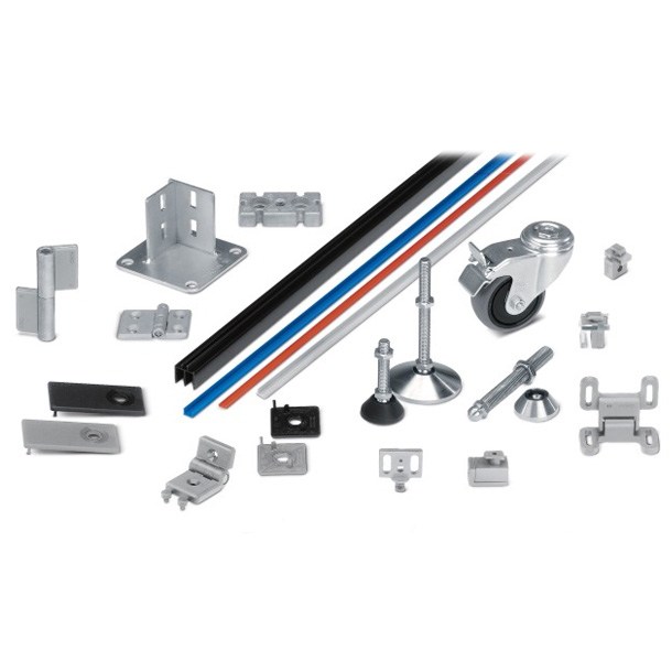 Eine breite Palette an Zubehörteilen ergänzt die Mechanik-Grundelemente des Bosch Rexroth Profilbaukastens. So steht Ihnen eine am Markt einzigartige Vielfalt an Möglichkeiten zur Verwirklichung Ihrer individuellen Systeme zur Verfügung. Die Komponenten sind auf die Bosch Rexroth Strebenprofile abgestimmt und für Aus- und Umbauten wiederverwendbar.